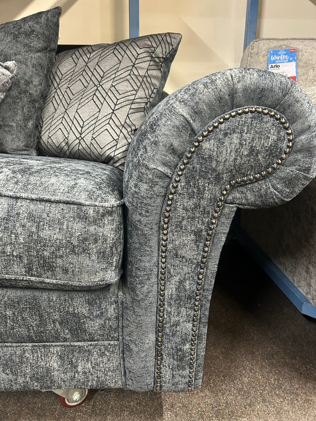 The Arnage 4 Seater Sofa features a durable textured fabric upholstery, combining comfort with a sophisticated look. Its generously padded arms are detailed to provide both support and style, making it an ideal centrepiece for spacious living areas. Designed to accommodate four people comfortably, this sofa balances practicality with elegant design details for lasting appeal.