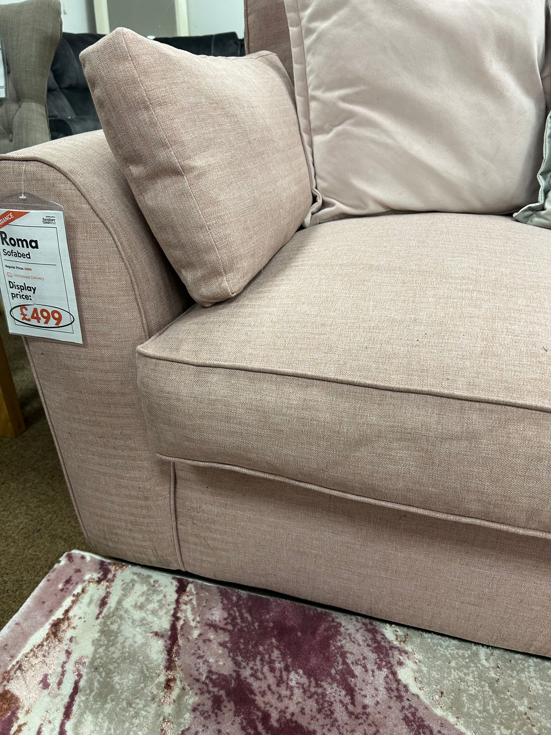 The Clearance Roma Sofa Bed offers versatile comfort and style at a reduced price due to visible marks on its cushions and armrests. Ideal for those seeking a functional sofa bed with character, it provides practical seating and sleeping options while delivering good value for a clearance item.
