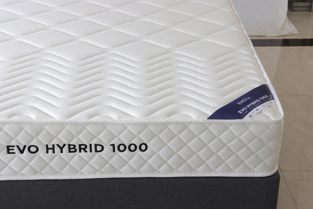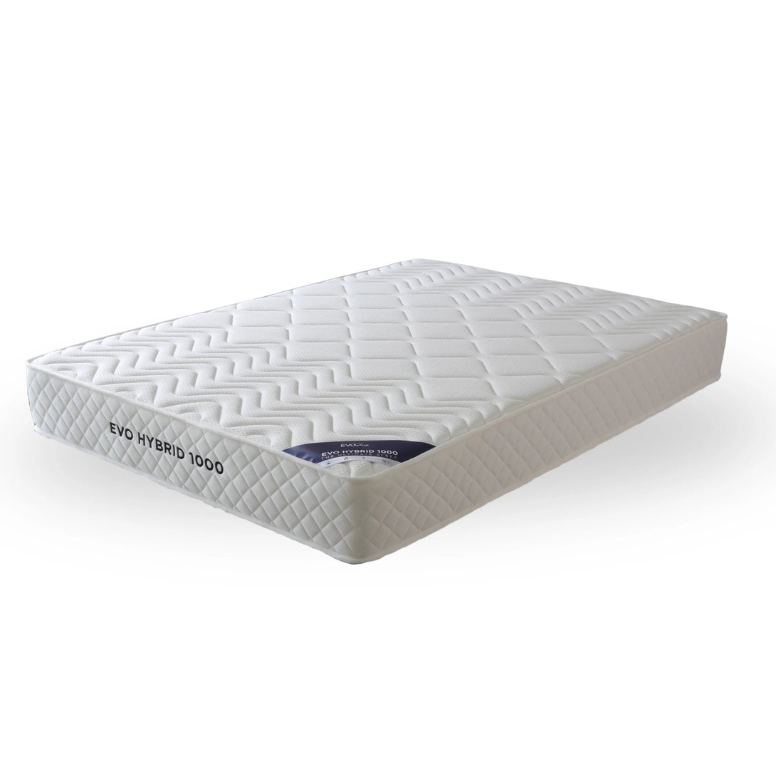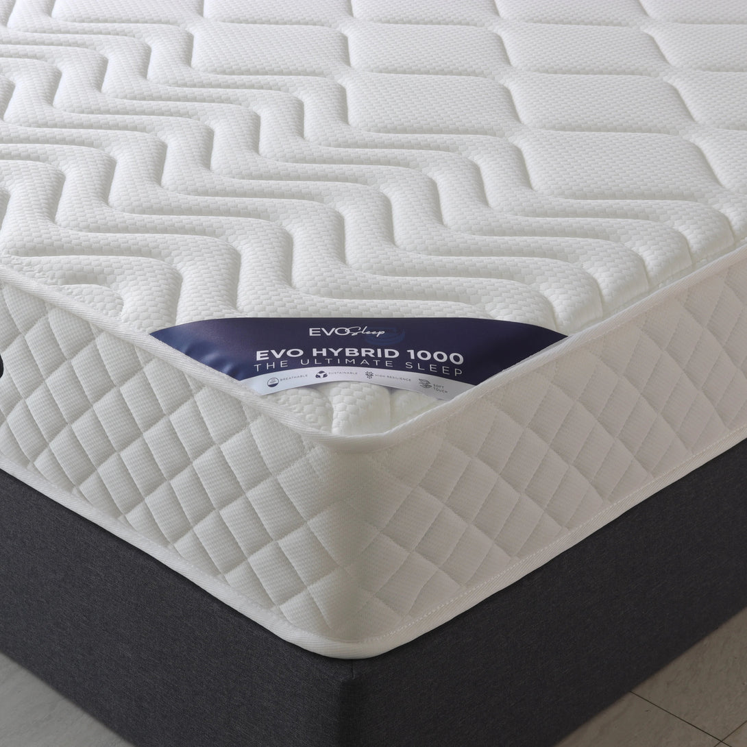 Designed for everyday luxury, the Evo Hybrid 1000 features a tight-top, double-sided construction for durability and consistent support. Its 18cm pocket spring system and layers of comfort and support foam create a medium-firm feel that suits most sleeping styles. The soft knitted fabric cover adds a smooth, cozy finish.
