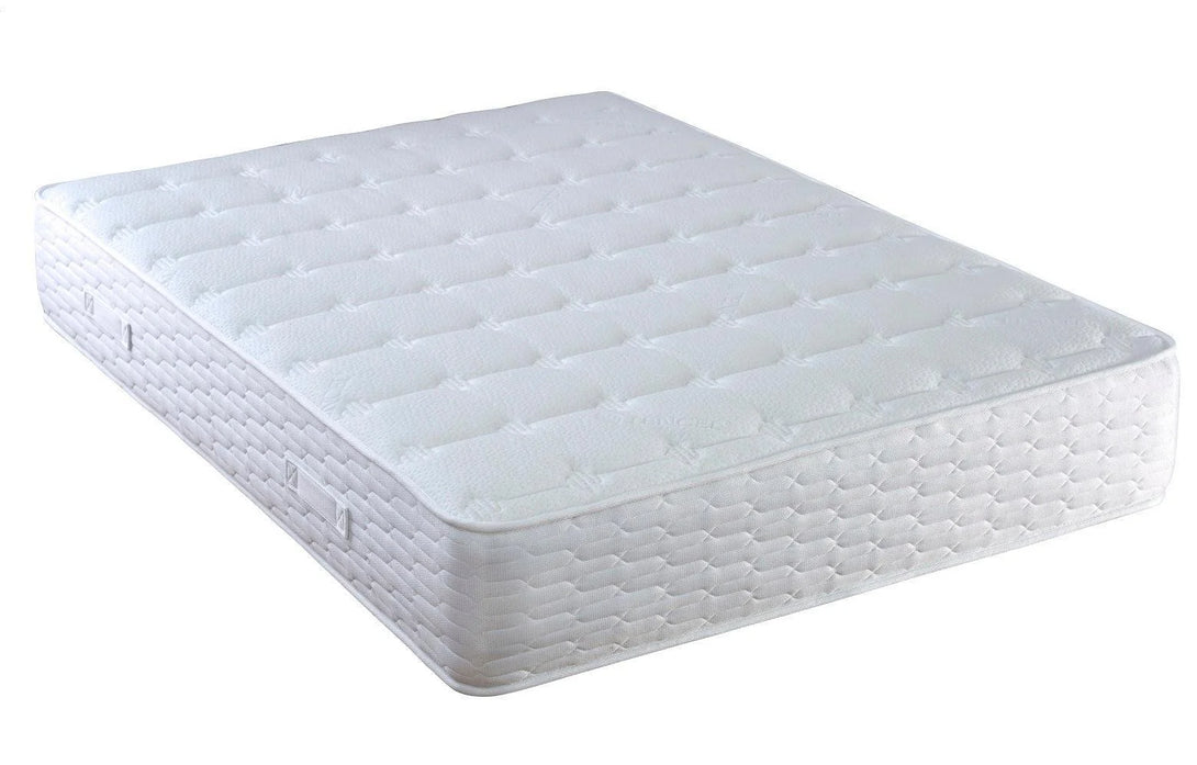 The Rimini Ortho Mattress features a luxury high loft micro-quilted stretch cover made from eco-friendly Tencel, ensuring excellent moisture management and a soothing, irritation-free surface ideal for sensitive skin. Its upholstery layers incorporate premium foam to enhance comfort and support. The Bonnell fully sprung system is side reinforced, preventing edge breakdown and expanding the usable sleeping area. Designed for durability, this mattress is double-sided; regular turning helps maintain its performance and extend its lifespan. Perfect for those seeking expert-backed orthopaedic support without compromising on eco-conscious materials.
